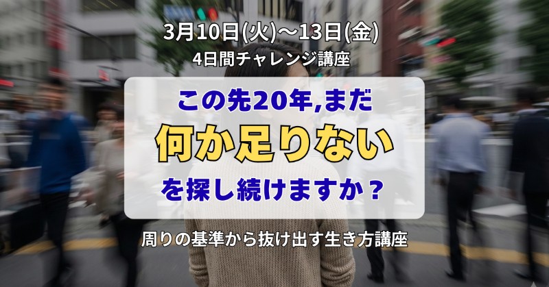 答えを外に探すのをやめて、あなた自身が納得して人生を選べるように。ぜひ一緒に、「自分基準」を取り戻すヒントを学んでみませんか?