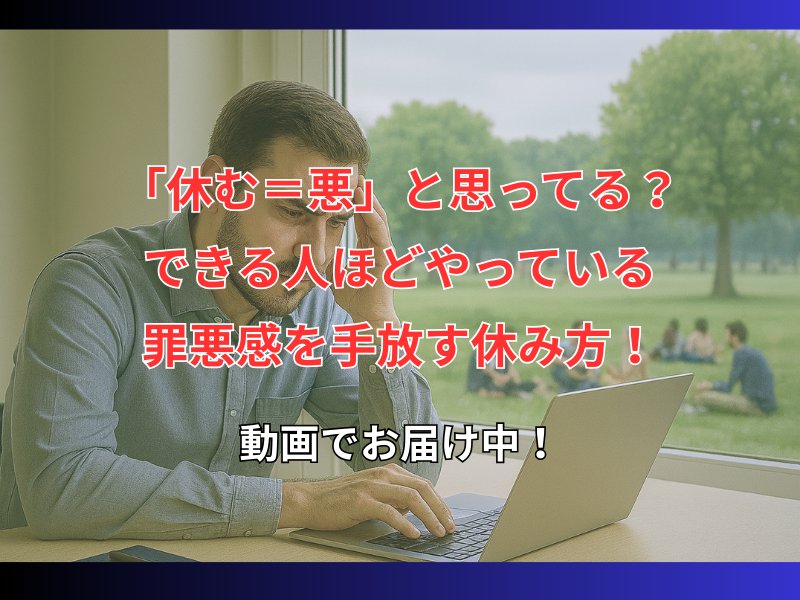 こんな風に「自分との対話」を進めてながら、「罪悪感を手放す休み方」を学び、実際に対処の仕方を自分で考えてみることができる、40分程度の動画となっております。