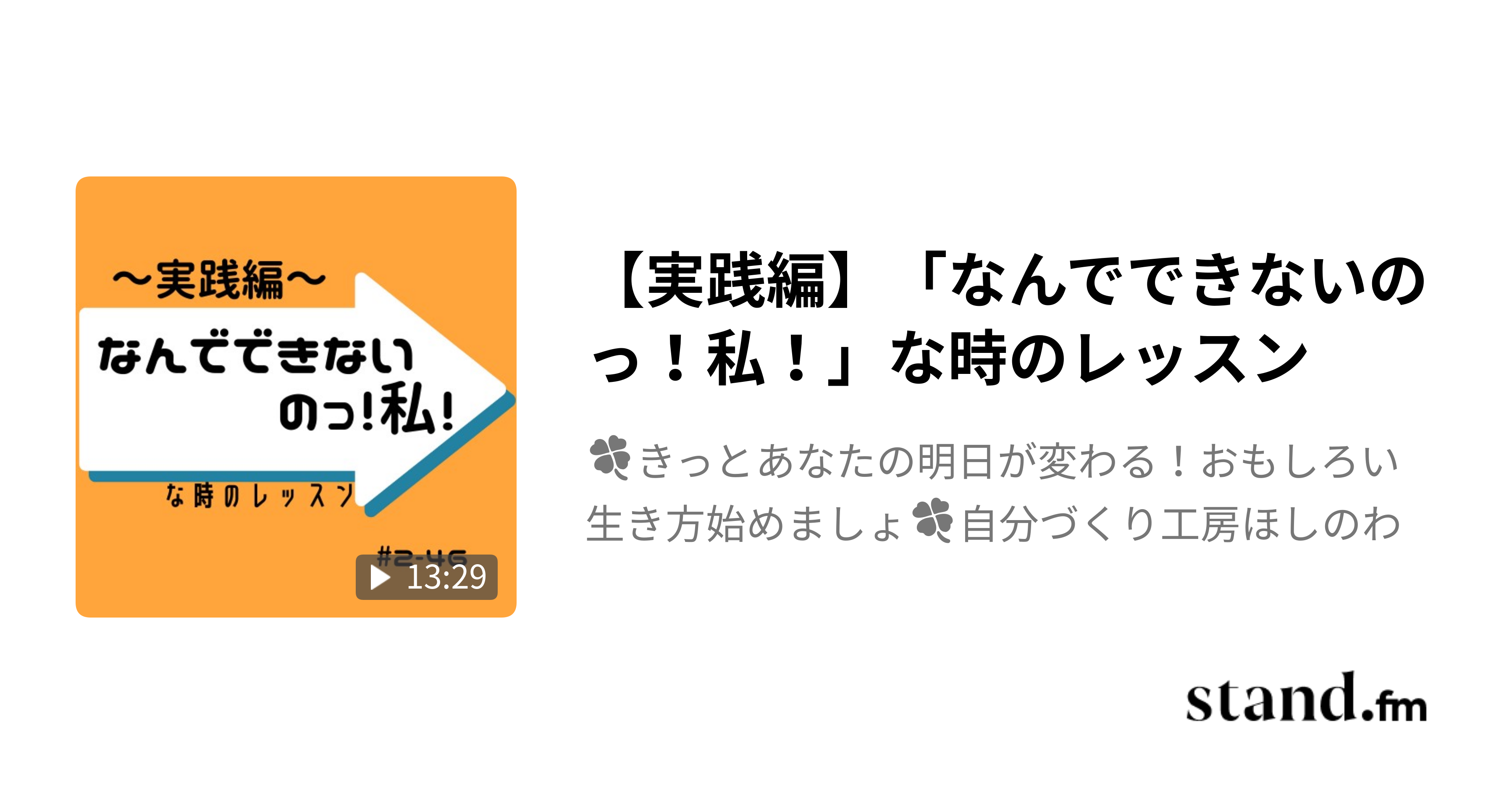 【実践編】「なんでできないのっ!私!」な時のレッスン - 🍀きっとあなたの明日が変わる!おもしろい生き方始めましょ🍀自分づくり工房ほしのわ | stand.fm