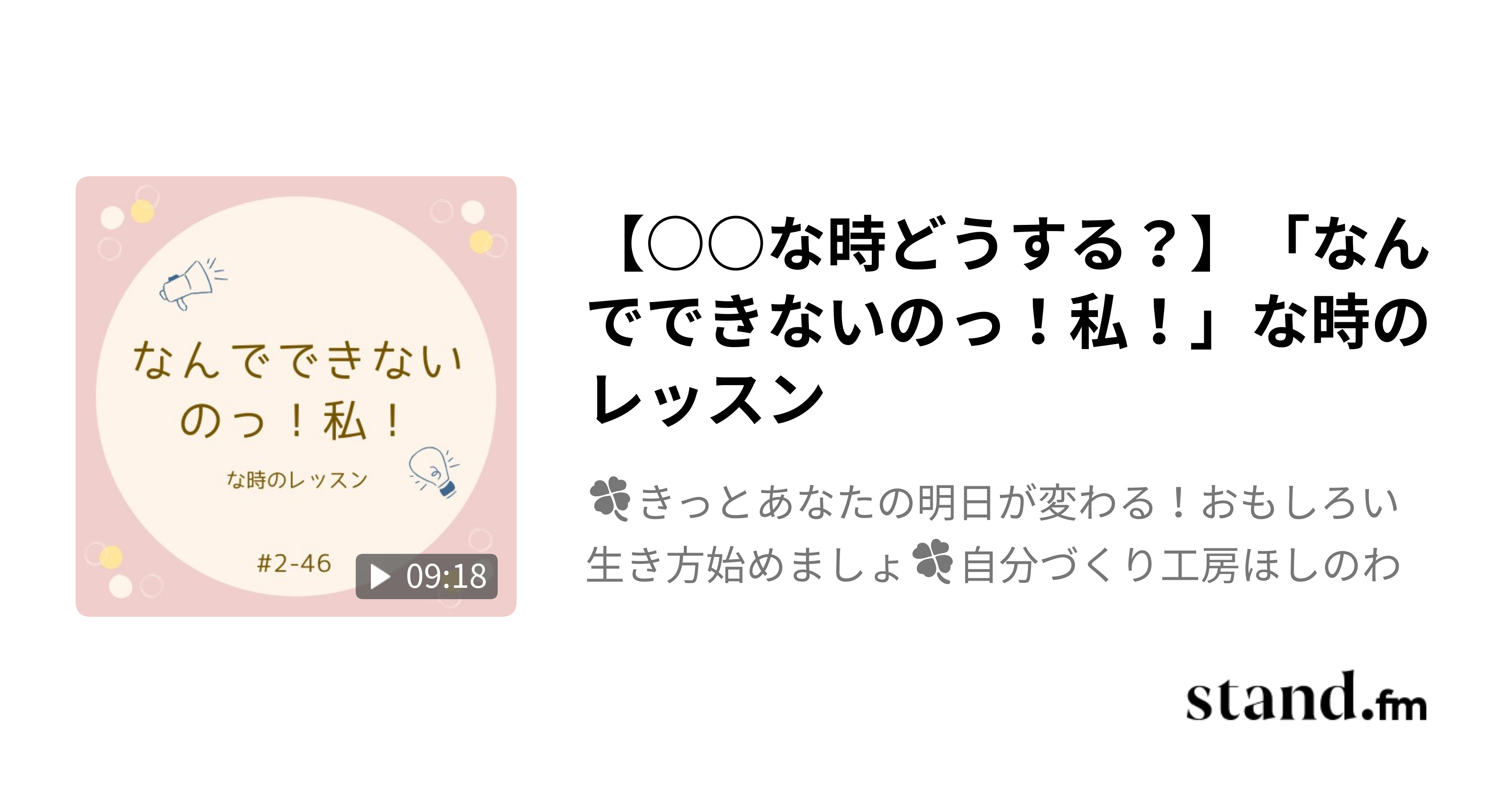 【○○な時どうする?】「なんでできないのっ!私!」な時のレッスン - 🍀きっとあなたの明日が変わる!おもしろい生き方始めましょ🍀自分づくり工房ほしのわ | stand.fm