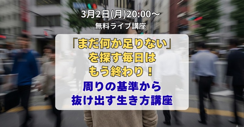 答えを外に探すのをやめて、あなた自身が納得して人生を選べるように。ぜひ一緒に、「自分基準」を取り戻すヒントを学んでみませんか?